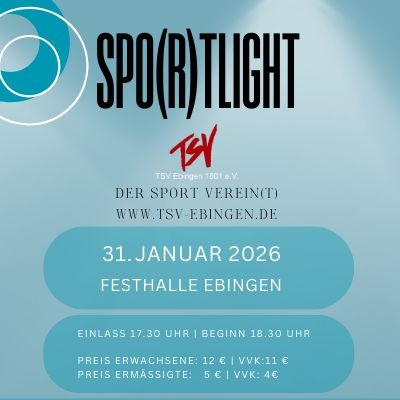 Am Samstag, dem 03.02.2024, fand in der Festhalle Albstadt-Ebingen wieder das alljährliche „SPO(R)TLIGHT“ statt. Die Jahresfeier des TSV Ebingen bot einen abwechslungsreichen Mix aus Sport, Tanz, Show und Unterhaltung, der nicht nur von vereinseigenen Gruppen präsentiert wurde.